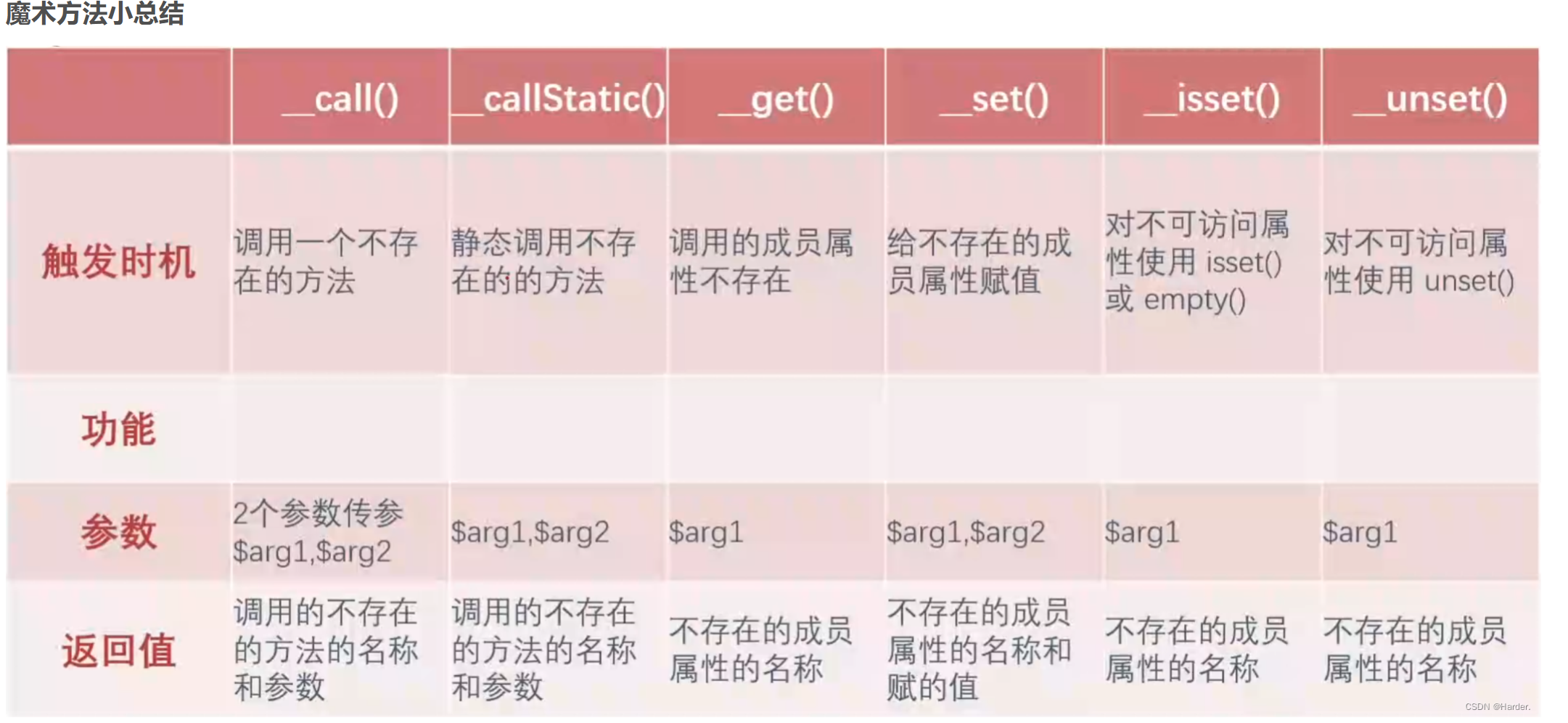 魔术方法是一种特殊的方法,会在对象执行某些操作时覆盖PHP的默认操作